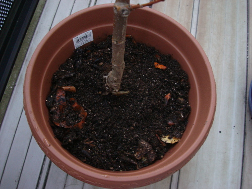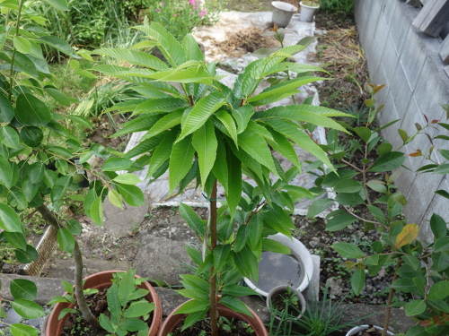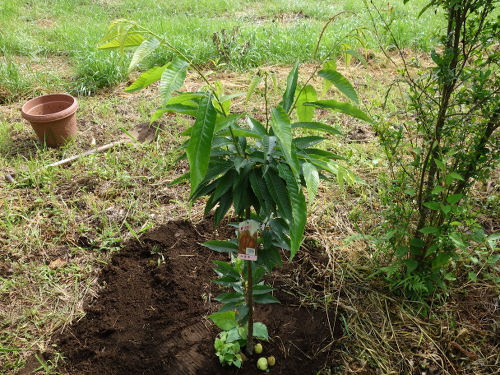 ザクロの実生の隣りに植えました。ザクロはそのうち処分します。