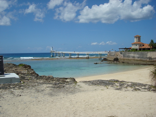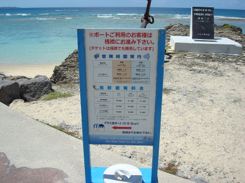 昨年は初めてブセナ海中公園のグラス底ボートを体験しました。その時は一般客としてザ・ブセナテラスの一般客駐車場に車を止めて、プライベートビーチ近くのチケット売り場でグラス底ボートのチケットを買って乗りました。2013年9月5日は宿泊客としてセントラルタワー4Fロビーでセット料金のチケットを出してもらいました(料金はあとで払います)。それは、チェックインの時間までまだ2時間近くあるので、待っている間に何もしないよりグラス底ボートと海中展望塔に行って戻ってこようということです。さっそく、エレベーターで1Fに下りて、セット料金のチケットを提示して、1FのRefreshing Squareのカウンターで料金を支払いました(1割引きでした)。そして、プールサイドを抜けて道に出て、そこをちょうどシャトルバスが通ったのでそれに乗って、グラス底ボート前で下車、昨年に引き続き2回目のグラス底ボート体験です。そして、さらに時間に余裕があったら海中展望塔に行きます。