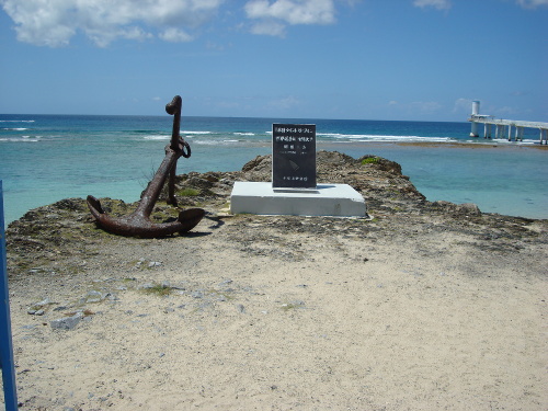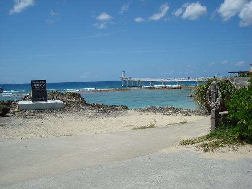 12:30撮影。グラス底ボートの乗り場近くに第8回ウィンドサーフィン世界選手権沖縄大会の記念碑があります。