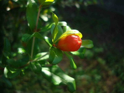 ザクロの葉は楕円形で、なめらかでつやがあります。初夏に鮮紅色の花をつけ、果実は花托の発達したもので、球状をしています。秋に熟すと赤く硬い外皮が不規則に裂けます。一説には、これが縁起が悪いとされています。割れると中には赤く透明な多汁性の果肉(仮種皮)の粒が無数に現れます。一説には、これが子孫繁栄で縁起がいいとされています。一体どっちなのでしょうか。プラス思考で私は後者をとります。だから植えています。果肉一粒ずつの中心に種子が存在すします。種を蒔いていると発芽して、わりと簡単に育ちます(このウェブサイトのように)。最初はアサガオの双葉が出てきたかと思いました(よく見ると違うのですが、何となくイメージで)。