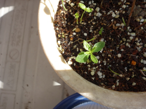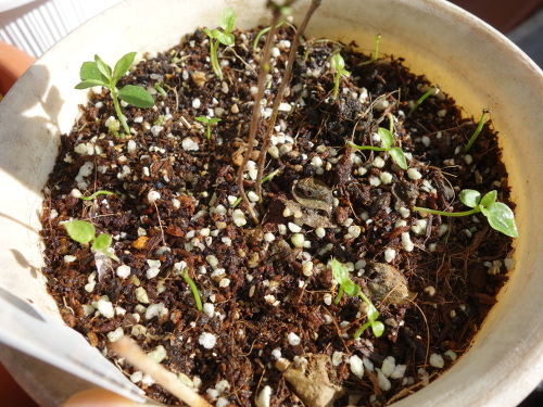 朝晩冷え込んできたため、発芽した苗が枯れ始めました。そこで、別の鉢に移植しました。