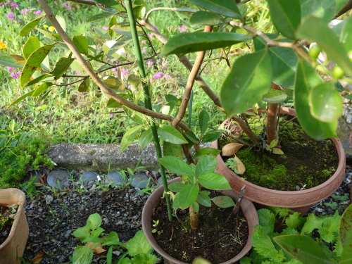 柔らかい土の上に、少し土を掘って置いてみました。これだと不安定さは解消されました。よってこの場所で様子を見ることにしました。