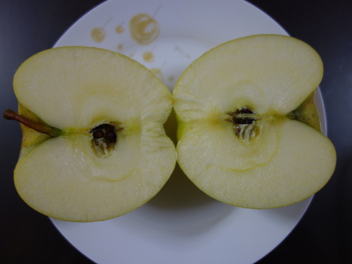 星の金貨というりんごを食べました。生産者が少ない希少価値の高いりんごといわれています。皮が薄くて、皮ごと食べてもきになりませんでした。あいかの香りはシナノゴールドやサンふじのように噛んだ時になシャキシャキとした食感のりんごです。とても甘く、香りも良いです。酸味もほどほどにあって甘さとのバランスが絶妙です。翌日、種を蒔きました。