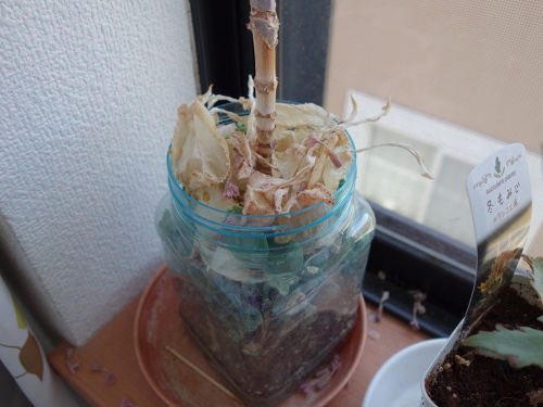 2018年8月19日に茎を根元から切って株を処分しました。これによって第四世代の栽培は終了しました。残った苗は第五世代です。これらはそのまま放置して様子を見ることにします。