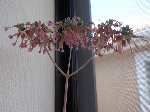 2018年7月14日現在、花は完全にドライフラワーになっていました。また、株自体が枯れてしまっています。やはり、子宝草は花が咲いたら完全に枯れてしまうのは再現性があります。