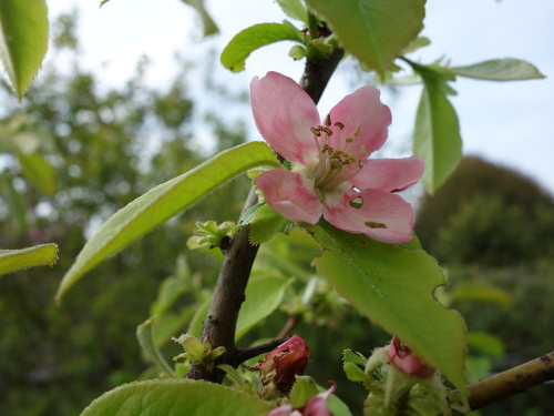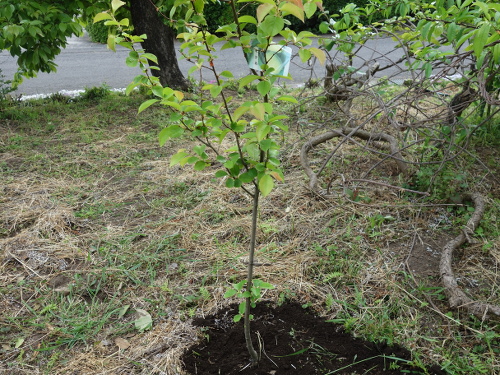 2017年5月4日にちくりん館からかりんの苗木を買ってきました。自分で育ててみたいと思っていたからです。けっこう高さがあって、車の後部に積みましたが、運転席のところまで頂部がきました。それほど伸びた茎んでですが、切り戻さずに植えました。