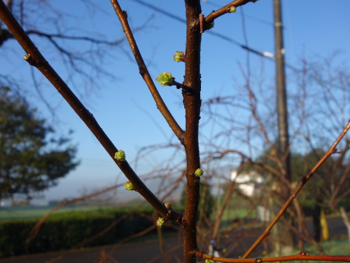 2018年3月31日現在、蕾が多数付いていて、咲いているのもありました。しかし、ほとんどがオス花でメス花はないようです。もっと木が育つまで待たなければならないようです。