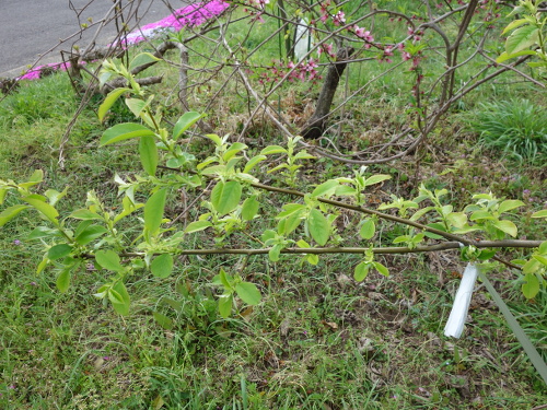 順調に生長しているように見えます。枝を曲げて広げることにしました。