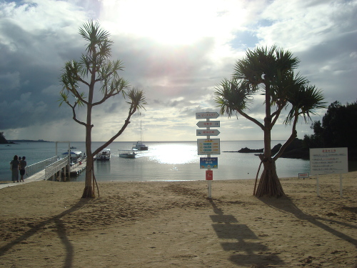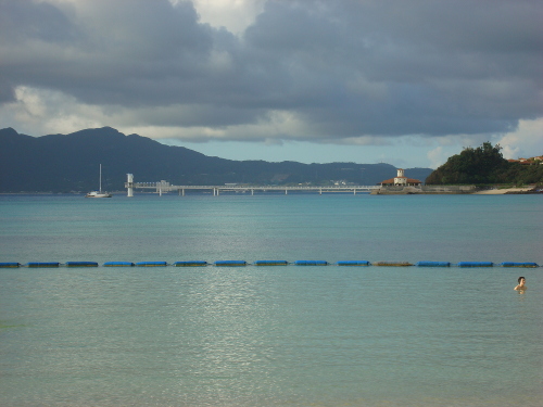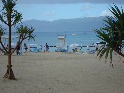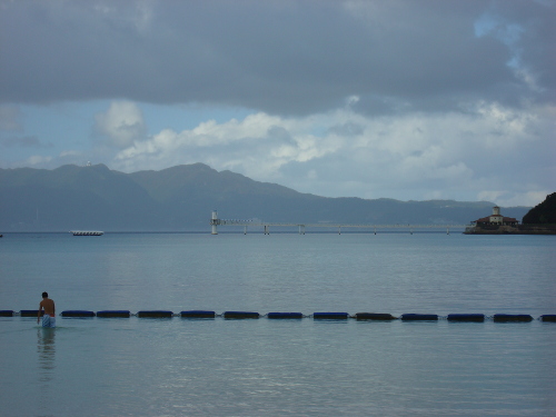 2012年9月4日の宿泊先のかりゆしビーチリゾート・オーシャンスパホテルにチェックインしてから、15:30前にマイクロバスでかりゆしビーチに行きました。その時は雲っていたので、夕方17時過ぎにもう一度行きました。その時の写真を時系列順で紹介します。