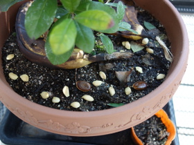 河内晩柑も晩白柚やファーストクィーンなどのようにわりと簡単に発芽するようです。しかし、例えば柚子などは実生では実が生るまでにかなり長くかかるようです。河内晩柑がどうなのかはわかりませんが、このまま実生で育てても冬の寒さで枯れてしまうので、鉢植えでなければ年を越せません。つまり、私の畑での地植えでは1年で枯れてしまうことになります。よって、ここでは発芽の確認までにとどめておきます。