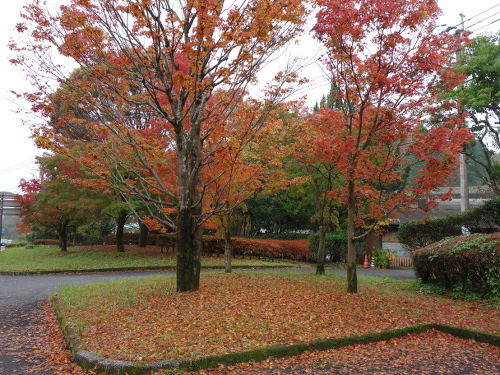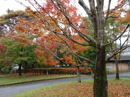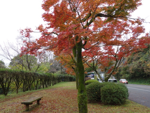 13:08撮影。霧島温泉市場の上の駐車場のところの紅葉。