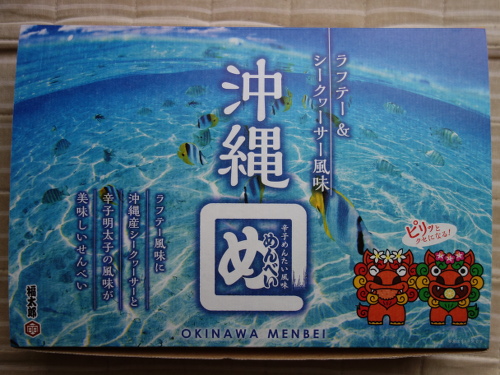 2016年9月9日に那覇空港で買った沖縄めんべい沖縄限定バージョン ラフテー&シークヮーサー風味入りを食べたところ、元々が辛子明太子風味なのですが、それにラフテー&シークヮーサー風味が付けてあるようです。ラフテーとは、豚の三枚肉の角煮のことです。率直な感想として、美味しいです。個人的には坂角総本舖のえびせんべい 「ゆかり」を彷彿させる、好きなせんべいです。「ゆかり」が好きな人はほぼ間違いなく気に入ることでしょう!お土産としてはおすすめです。ただ、私はシークヮーサー風味はあまり感じられませんでした。「するといわれればするかな〜」という感じです。でも、辛子明太子風味がしっかりしていてとても美味しいと思います。
