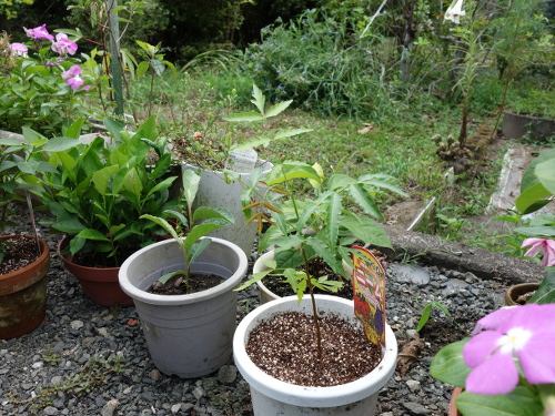 2ヶ月後、それなりに大きくなったような気がします。ポリポットが苗に対して小さくなってきました。そこで、一回り大きいプラスチック製の鉢に移植しました。