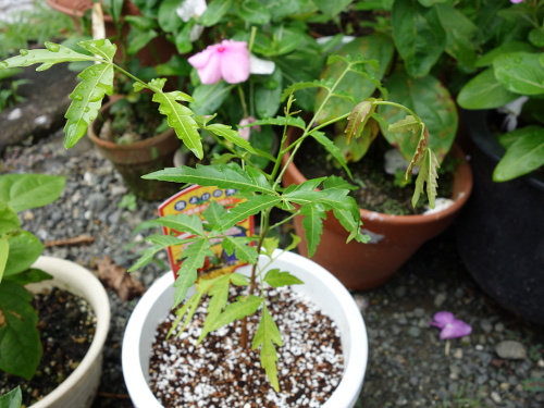 ニームという虫除け植物を買ってきました。ニーム(インドセンダン)に含まれるアザディラクチン(アザジラクチン)という物質が虫の成長や食欲を減退させていきます。ベランダで栽培しているオクラやハイビスカスなどに効果があることを期待して1株育ててみます。葉っぱは栴檀の木の葉っぱのようです。