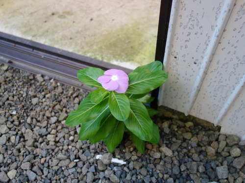 ニチニチソウは真夏でも咲くので、暑さに強い花です。うちの庭には白いニチニチソウが植えてあります。白い花びらでも花の中央が異なる2種類を株分けしてアパートのベランダに持って来ました。暑さに強いので、ベランダで鉢に植えて育てます。