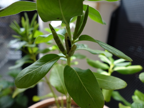 ニチニチソウの種は昆虫か何かの糞のように見えます。アパートのベランダで鉢植えしましたが、すぐに安定しました。育てやすい花と言われているので、かなりの高温になるうちのアパートのベランダでも大丈夫と思われます。ちなみに、うちのベランダでは、パッションフルーツ、スイカ、メロン、ツルムラサキ、ハイビスカス、グァバ、りんご、フェイジョアなど、ほとんどが何らか影響を受けました。パッションフルーツ、グァバ、フェイジョア以外は全部枯れてしまいました。逆に、ほとんど影響を受けていないのはローゼルとオクラと河内晩柑です。参考までに。