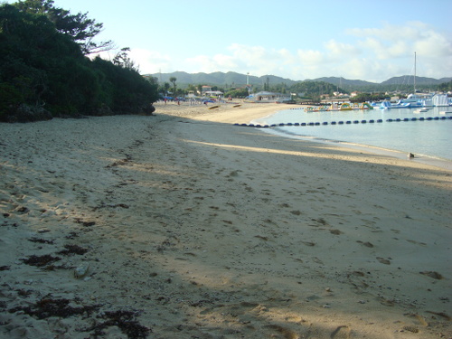 8:28撮影。満潮の時は水位が上がって砂浜は通れません。