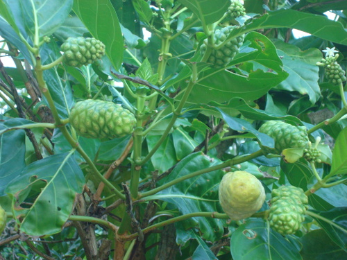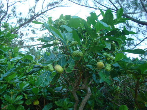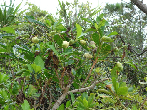 2016年10月26日朝に万座ビーチのところで見つけたノニの木の写真です。