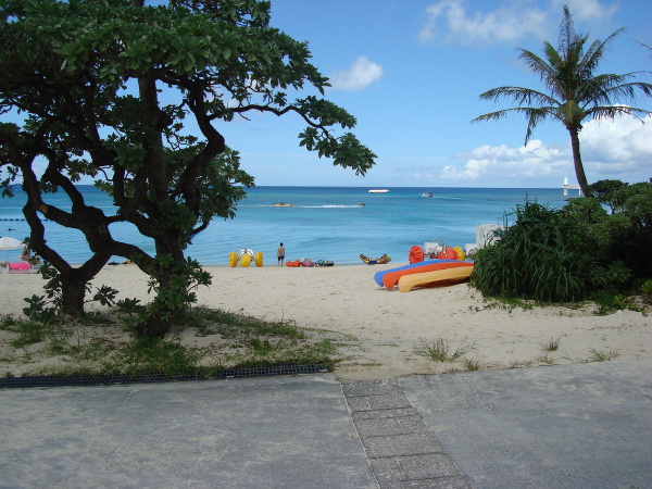 国道58号線のところにあるかりゆしビーチに送迎のマイクロバスで2回行きました。ビーチがホテルから見えないところ、というか、敷地内にビーチがないのは、、これまで泊まった5つのホテルの中では唯一のパターンです。まあ、歩いていこうと思えば行けますが…。ホテル自体は大きくて、プールもあって、賑やかな感じのホテルという印象です。スコールが降る時に雨雲が移動しているのが見えて印象的でした。印象としてはとても眺めのいい大きなホテルです。これでビーチも近かったらほぼ完璧です(あくまでも個人の主観ですが・・・)。
