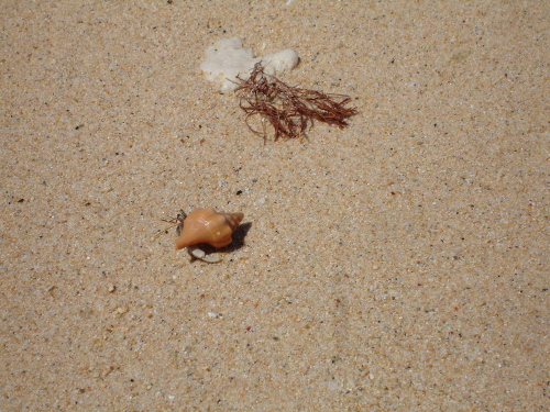 御菓子御殿恩納店の裏の砂浜にいたヤドカリ