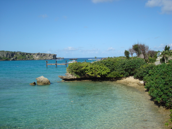 13:27撮影。昨年に引き続き2回目のグラス底ボートに乗ってから、チェックイン時間までもう少しあったので、通算3回目の海中展望塔にも行くことにしました。その時の橋の下の海がエメラルドグリーンでした。