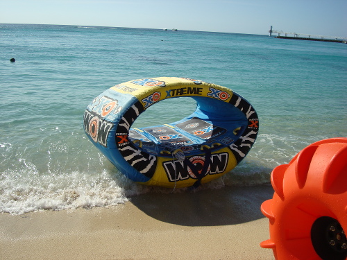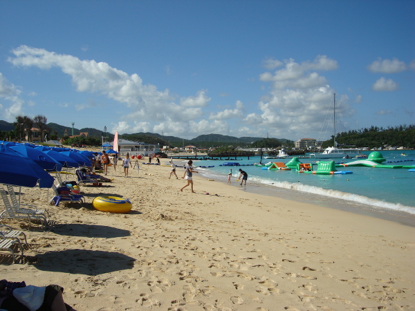 ANAインターコンチネンタル万座ビーチホテルはビーチに行く時のサンダルが部屋に準備してあったのですが、ブセナテラスの場合はクラブ・コテージとかでもない限り、私達の泊まったデラックスナチュラルオーシャンビューの部屋ではビーチサンダルが備え付けてありませんでした。なので、私達は家から持って来ました。一応、ホテル内の売店のサンダルもチェックしましたが、なかなか高いし、デザインも好みに合いませんでした。近くの国道沿いのコンビニにも行ってチェックしましたが、ホテルのものより安いものの、最も安いものでも日常の中で家の近所の靴屋で売っているサンダルの2倍ぐらいはしました。私達はいつも家でベランダで使っているサンダルを持ってきていたので靴で行く羽目にならなくて済みましたが、ビーチに行きたい人は、ブセナテラスではサンダル持参が必要かどうかの確認を忘れずに!