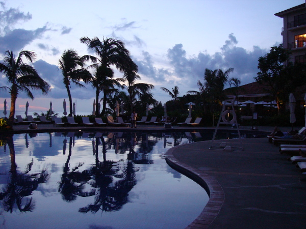 18:58撮影。クラブ・コテージ宿泊のため、セントラルタワーに客室がないので、部屋から見ることができません。それで、プールサイドに来ました。