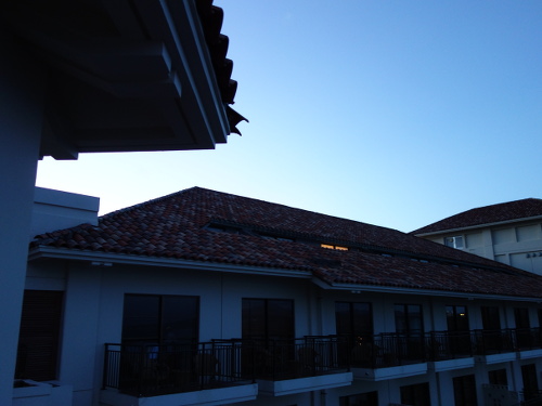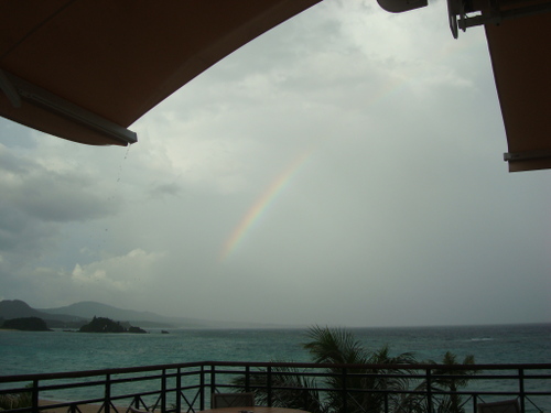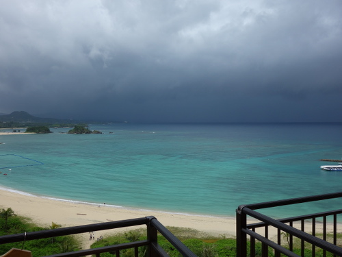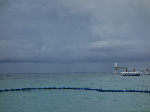 17:05撮影。昨日は16:30頃スコールがかりゆしビーチ方面からやってくるのが見えたので、ホテルまで走って逃げました。ぎりぎり間に合いました。