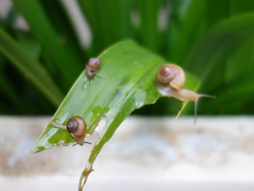 17:34撮影。これだけ雨ばかりだとカタツムリもいますよね〜