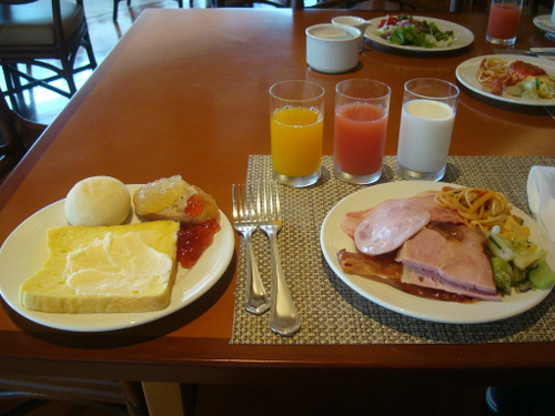 御菓子御殿から帰って来て、14:30頃に3Fのリビングルーム マロードでスカイホリデープランに付いていたケーキとティーの無料券(1回分)を使ったりして楽しみました。こんな感じでホテル内で過ごしました。