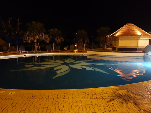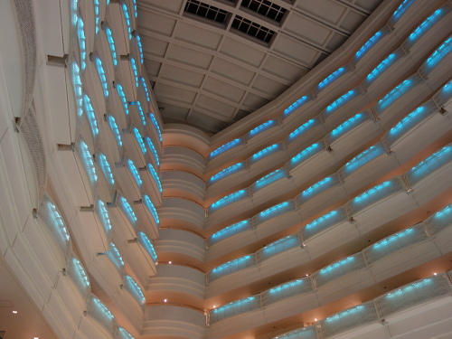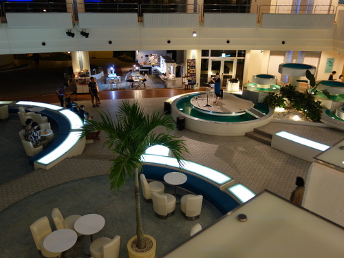 あと、気付いた点として、ANAインターコンチネンタル万座ビーチホテルの中庭に面した全ての階の壁(というか、柵と言ったらいいでしょうか)のLEDによるライトアップが変わっていました。2013年の時はLEDの色が青、緑、ピンクとあって、時間経過に応じて周期的に変化していたのですが、今回3年ぶりになる2016年はLEDの色は青系に統一されていました。3年間の間に変わったようです。