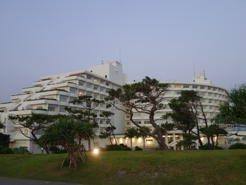 早朝にANA万座ビーチホテルの正面玄関から出て左方向に歩きました。そこからホテルを撮影しました。こちら側からホテルを撮影したのは初めてでした。6:16撮影。