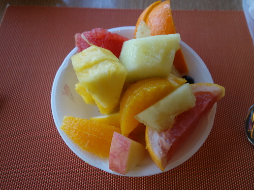 万座ビーチホテルの1階のAQUA BELLEで朝食をとっている時に食べたフルーツ。7:27撮影。