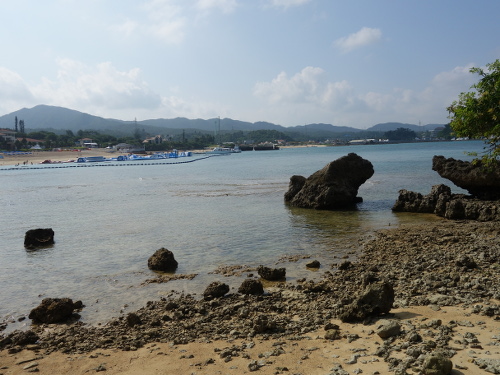 万座ビーチの遊泳エリアではないところの海岸。9:45撮影。