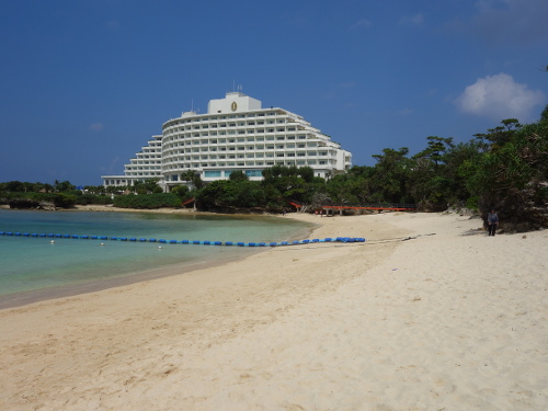 万座ビーチから撮った万座ビーチホテル。11:28撮影。