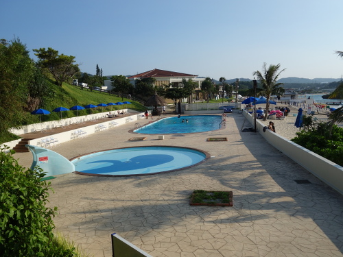 昨年は台風被害で全く使えなかった万座ビーチのところのプール。16:26撮影。