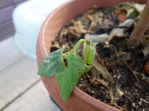 2本目(No.2とします)はベニーオクラの種を蒔いて発芽しなかったプランターに植えました。横にはカクテルパープルの実生が5〜6本。
