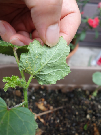 No.2の葉っぱの裏にアブラムシ出現。油断も隙もありません。