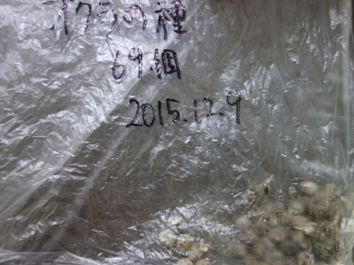 2015年に収穫した沖縄島オクラの種。冷蔵庫に保存していました。