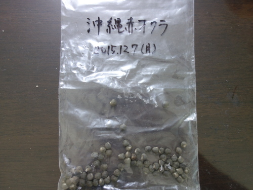2015年に収穫した沖縄赤オクラの種。冷蔵庫に保存していました。