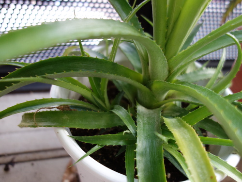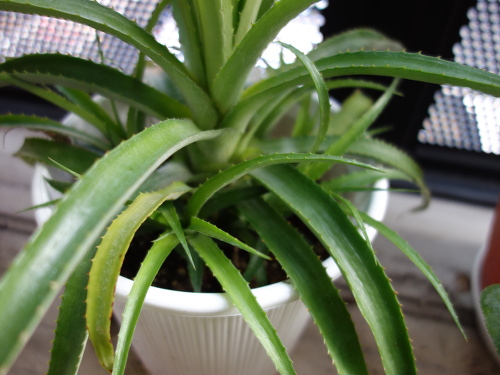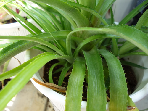 葉っぱがかなり伸びてきました。先端が刺さると痛いので、このあとハサミで少し切りました。