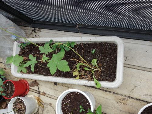 台風が近づいているのでベランダを片づけています。このあと蔓を根元から切って処分しました。