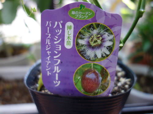 パッションフルーツ パープルジャイアントの挿し木苗を買ってきました。昨年はエドゥリスの実生苗で実が収穫できました。