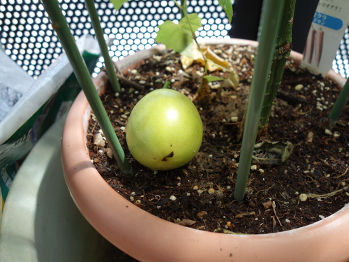 その3個はこの写真の中央付近の少し日陰になっているところにあります。左端の1個は日当たりのよい場所にあり大きいので、落ちるのは早いかもしれません。