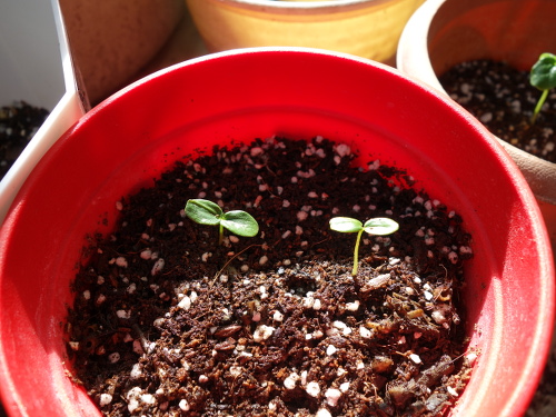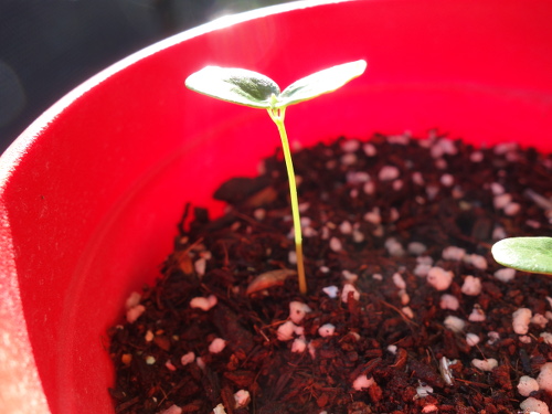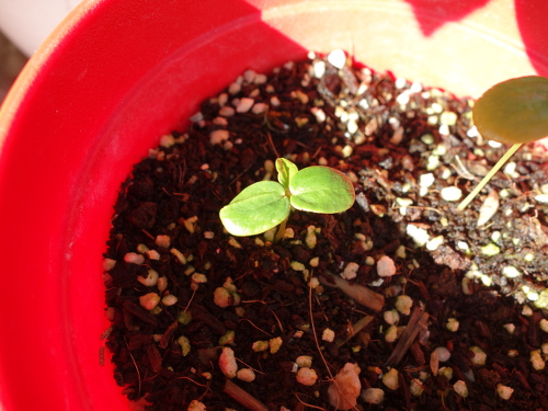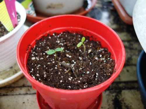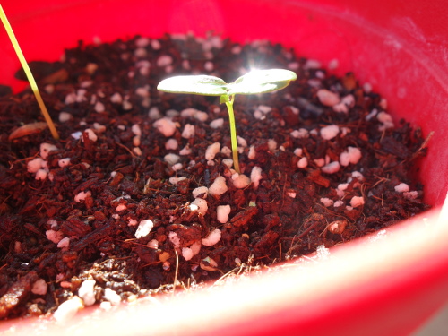 | 2016年8月頃。プランター内で発芽を発見したのは9月下旬。鉢上げしたのは10月1日。 | |