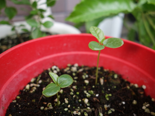 とりあえず最近発芽した2本で、果実を収穫できるまでの期間が数ヶ月でも短縮できるか、やってみますね。