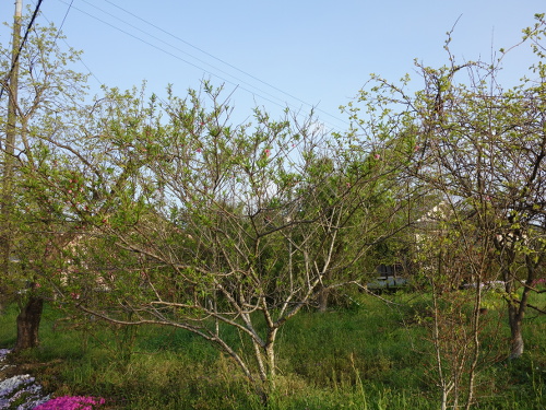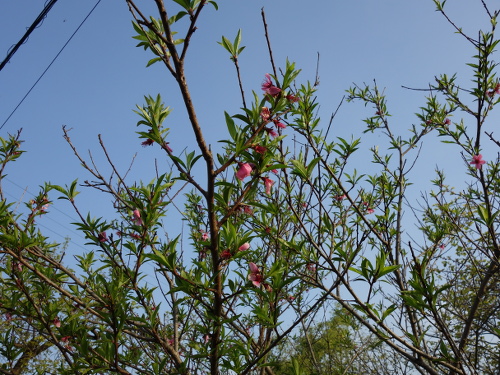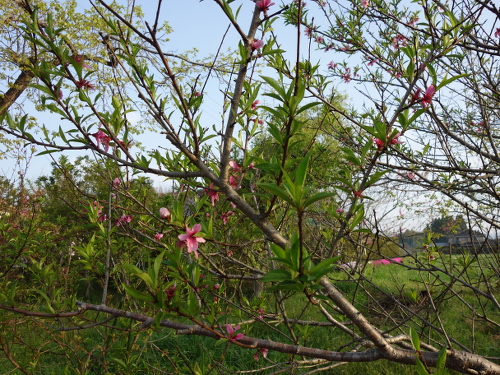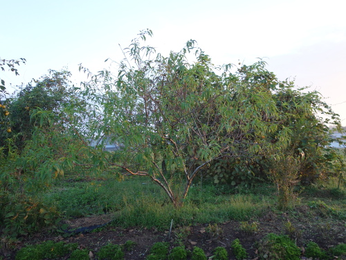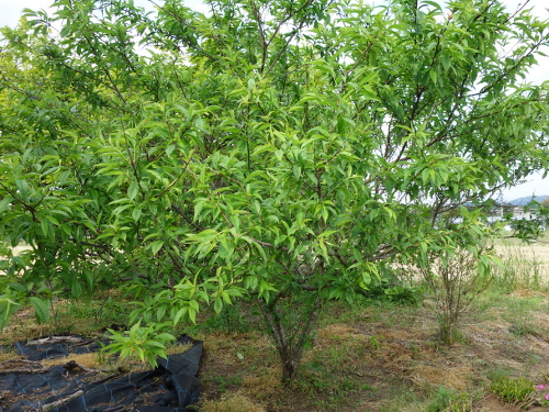 2016年は桃はこの白桃の実生のみならず、花のあとに生ったものの、大きくなる前に落ちました。白桃の実生の木はけっこう大きくなりました。今では接ぎ木苗を育てた木よりも安定して実を付けます。