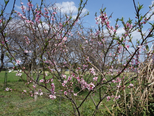 そして、2015年3月28日、白桃の実生に花がたくさん咲いていました。2008年には根元から草刈り機で切られて、一度はあきらめていたのですが、そのあとにひこばえが出てきて、それが無事に生長してくれました。花が咲いたので、あとは、実が1個でも収穫できるかどうか、俄然楽しみになってきました。