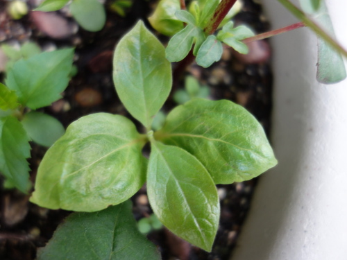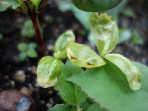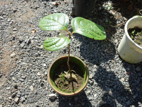 結局6個の種のうち、この3本が発芽して、残りの種3個は発芽せず腐りました。No.1が左奥、No.2が右端、No.3がそれらの間に位置しています。ある程度生長して安定したら、植え替えを検討します。