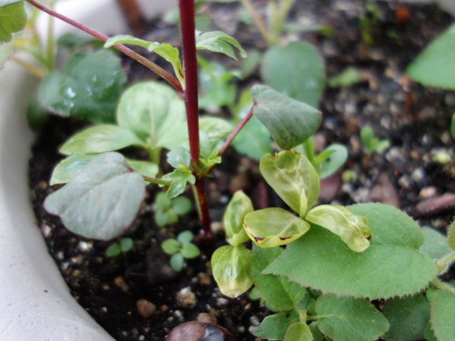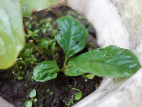 3本のうち最後の1本は別の鉢に植えてある実生の根元に植えました。根のダメージが大きかったので、枯れるかもしれません。